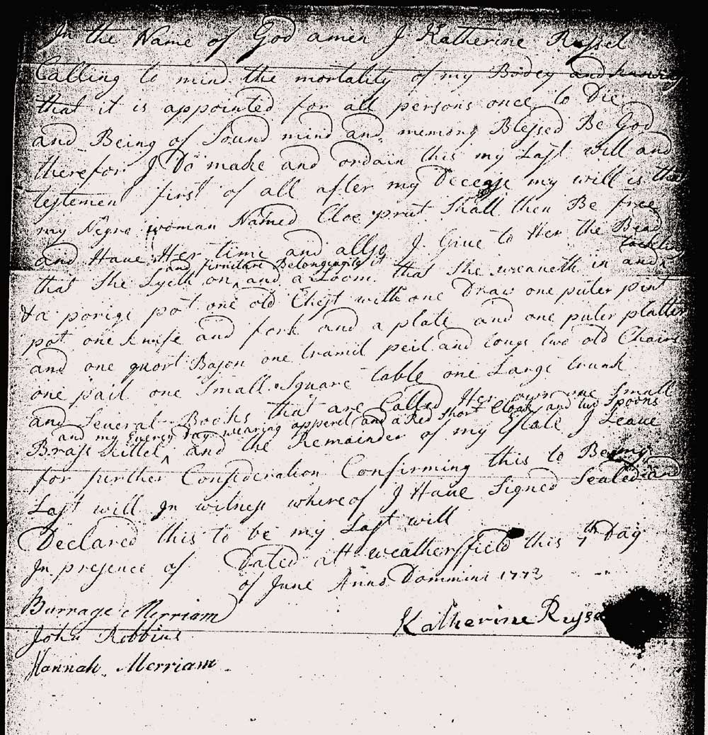 (source: Probate Hartford District, Wethersfield, 1777, #4679 microfilm @Connecticut State Library)